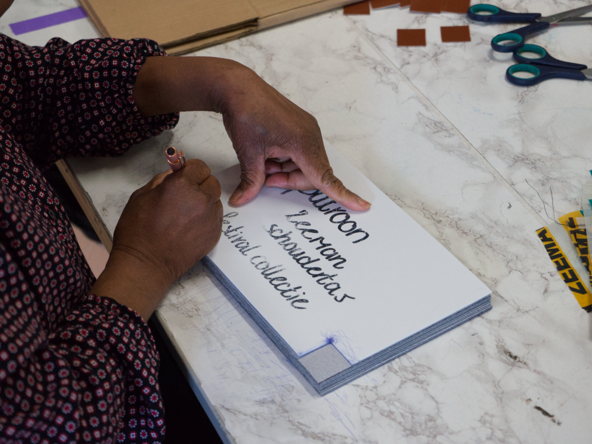 Met deze tasjes als ingrediënt zijn we aan de slag gegaan. Voor de tasjes kunnen we deze keer putten uit een breed scala aan dessins. Bij de kleding is gekozen voor twee specifieke dessins tasjes, vanwege de grote hoeveelheid hiervan, in combinatie dat het online verkocht gaat worden. We maken een paar snelle schetsen en gaan aan de slag met patronen.