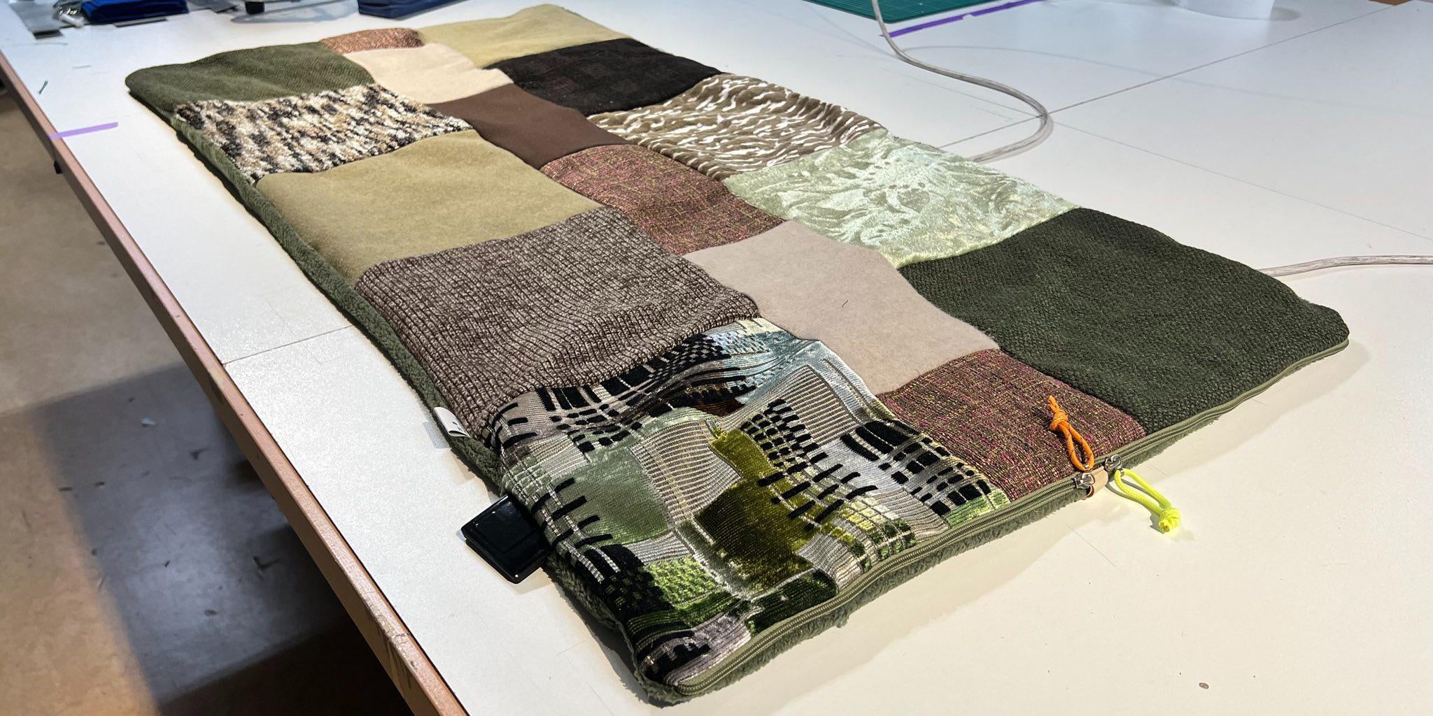 Om de deken warm te laten worden, is er warmtetechniek nodig. Hiervoor hebben we een partner gevonden in Sit&Heat, die de warmtepads en benodigde controlepaneel, bedrading en powerbanks heeft geleverd.
