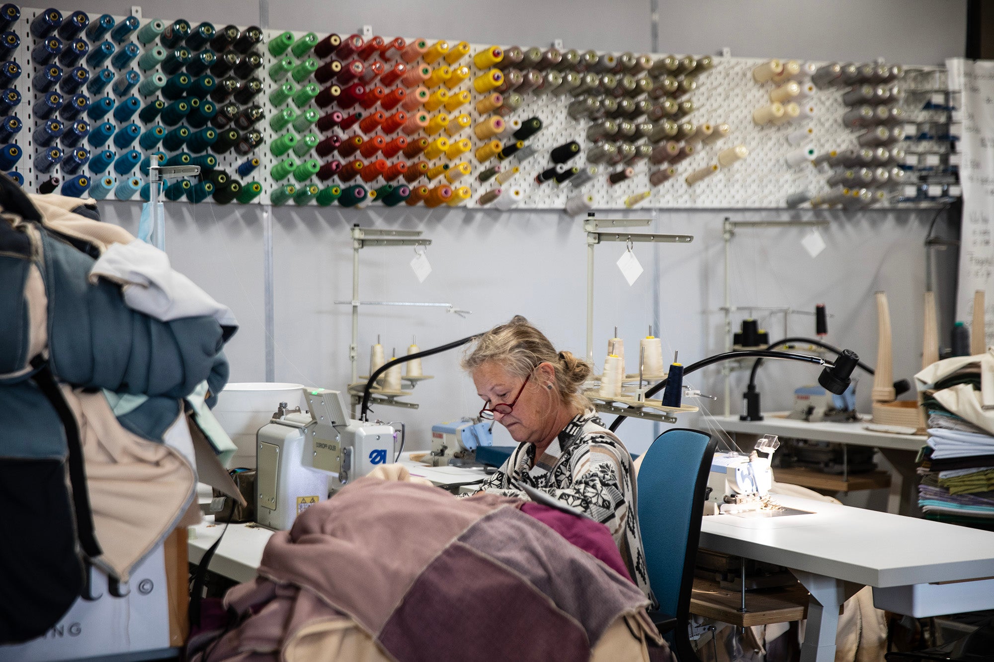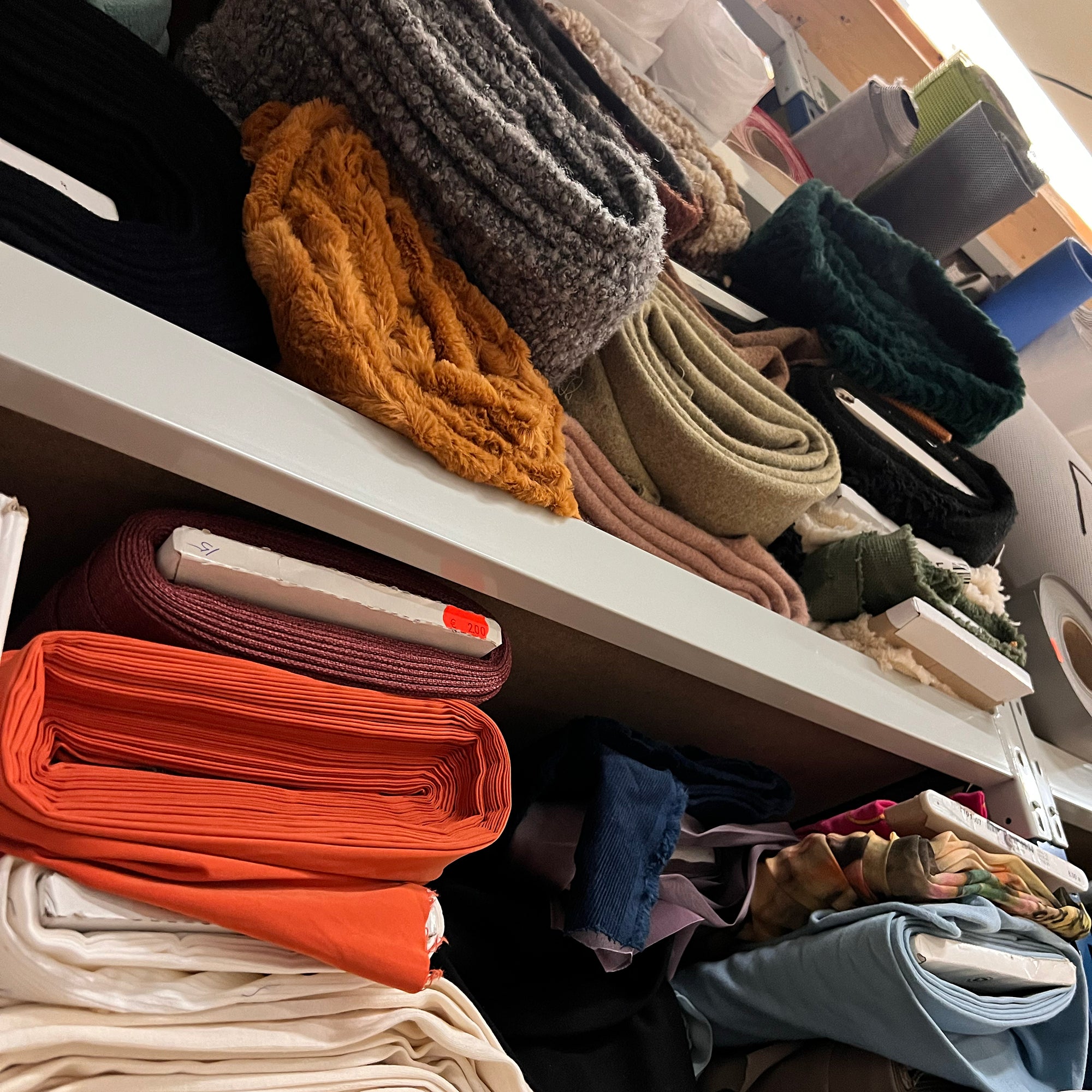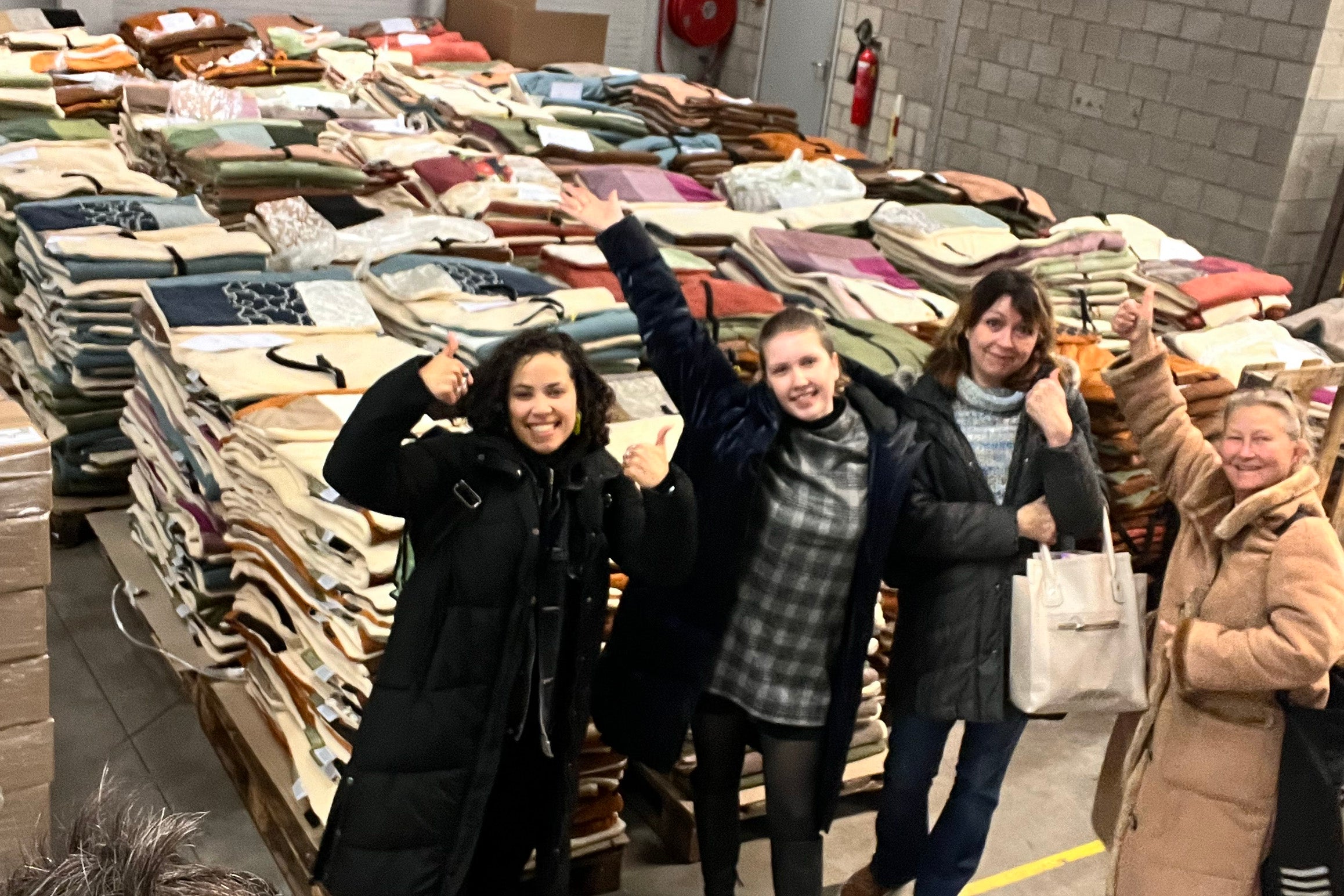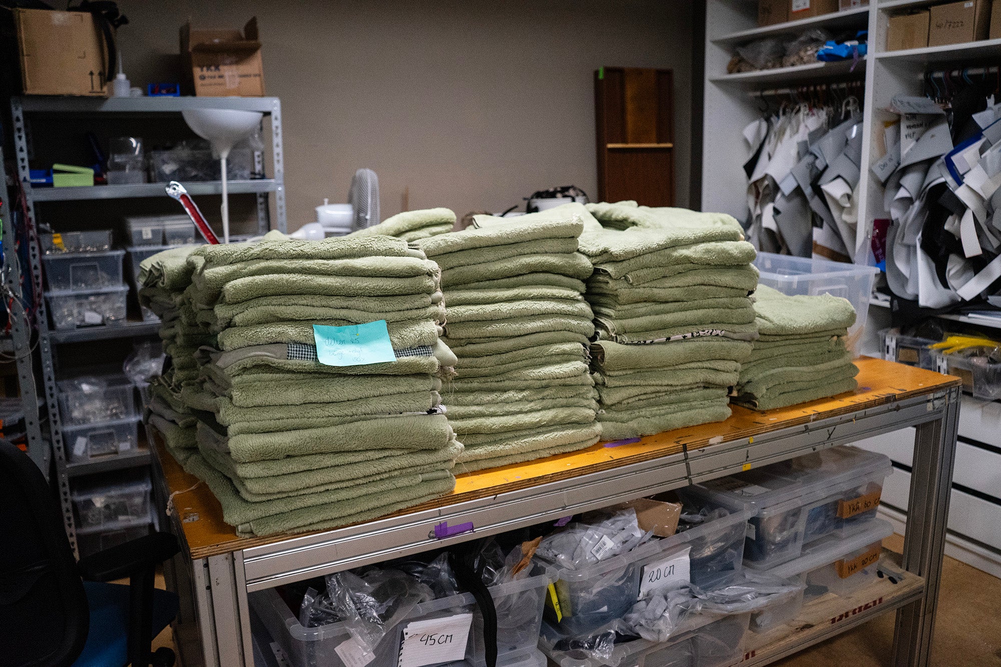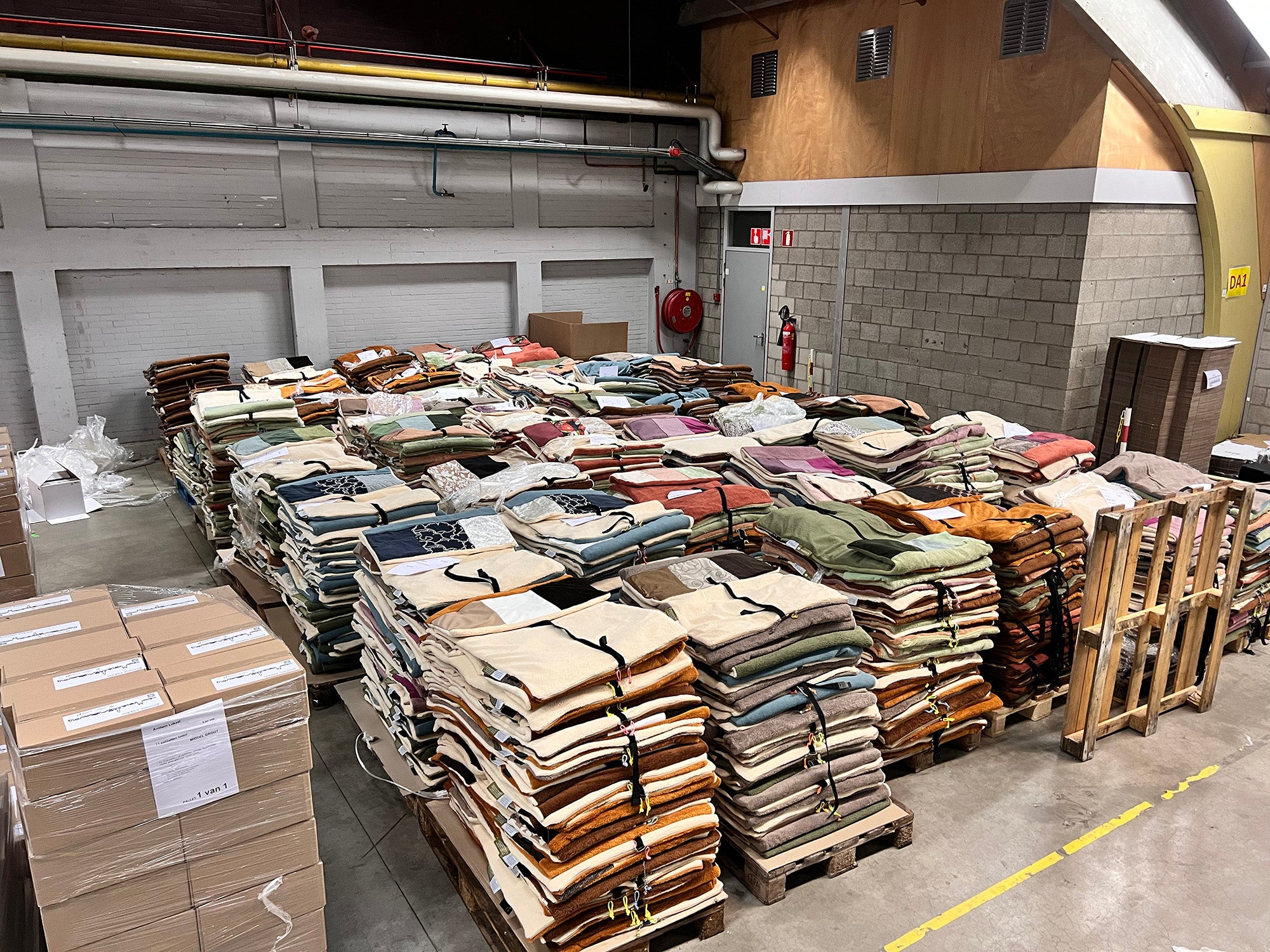 Een kleine stapel dekens in ons atelier.