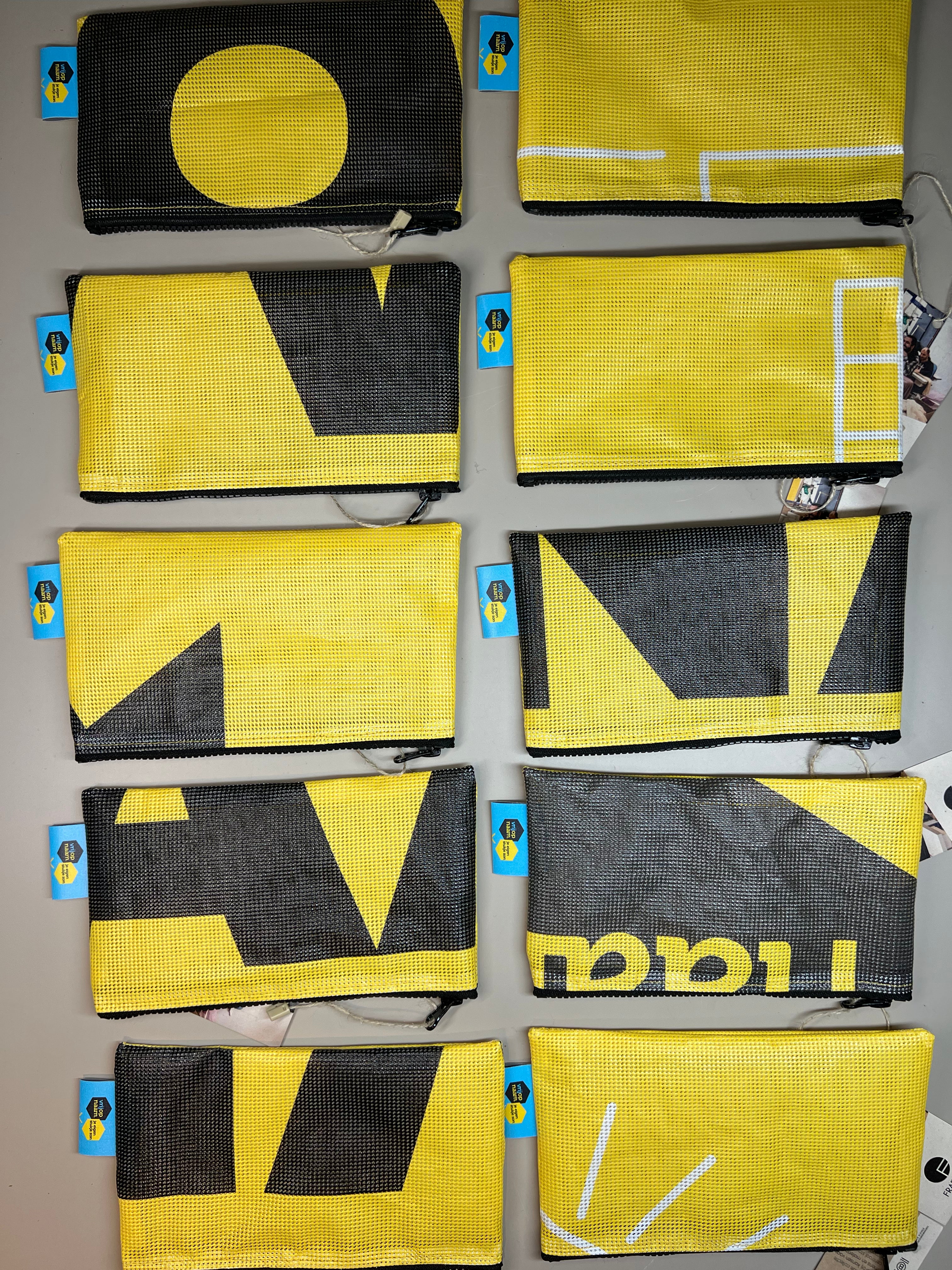 Onze etuis zijn niet alleen duurzaam, maar ook sterk, functioneel en stijlvol. Door het hergebruik van bannerdoek zijn ze slijtvast en waterafstotend – perfect voor dagelijks gebruik, van pennen en make-up tot kabels en kleine essentials.