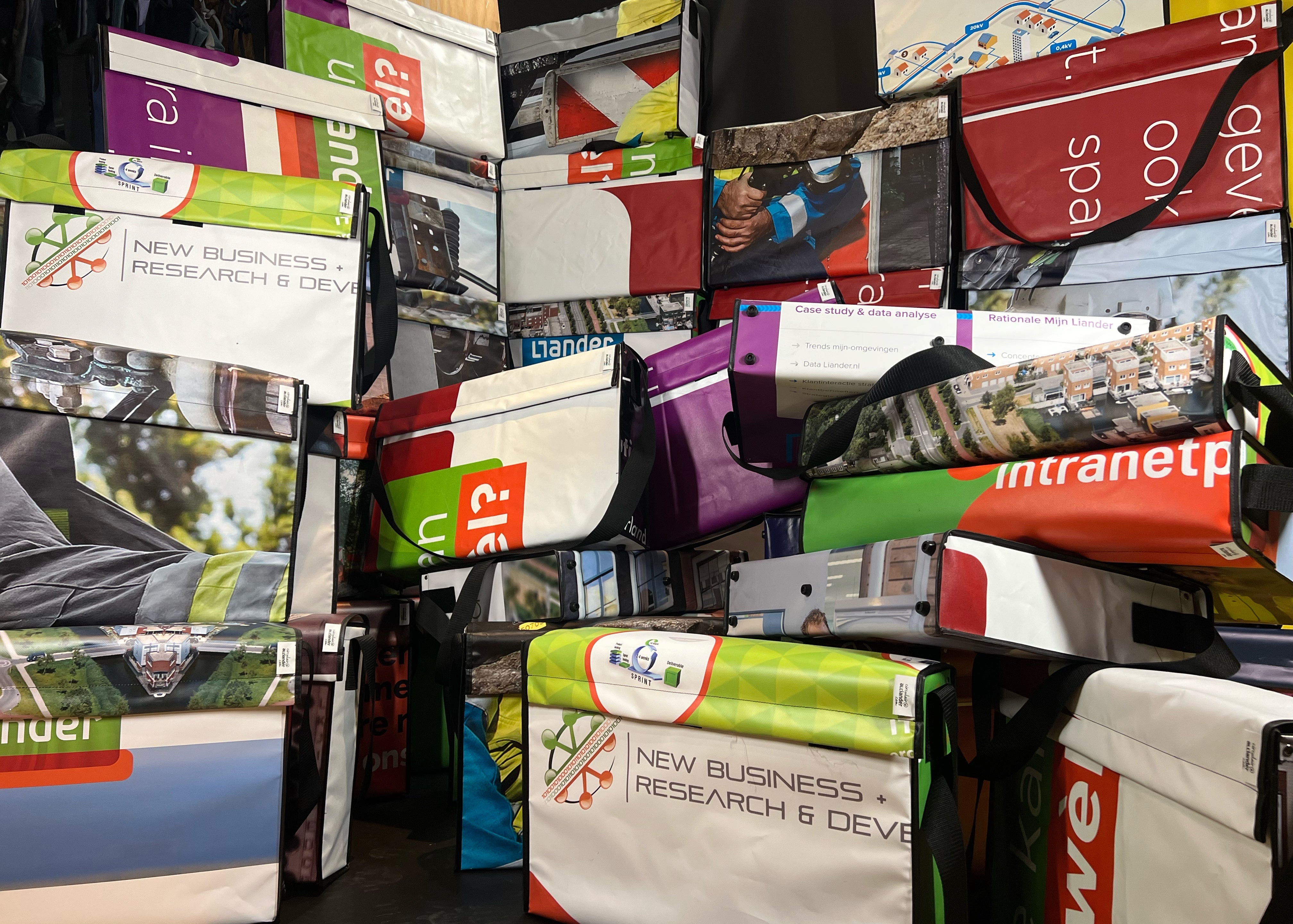 Met de banners van oude campagnes en voorlichtingen maakt Fraenck oersterke werktassen die allerlei werktuig van Den Helder naar Maastricht brengen. Duurzaamheid gaat verder dan alleen stroom en gas, de hele keten wordt op deze manier ook duurzamer!