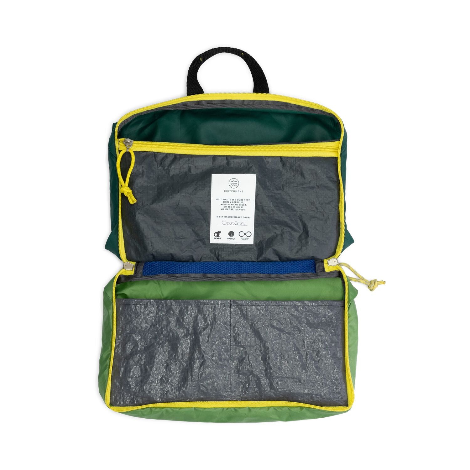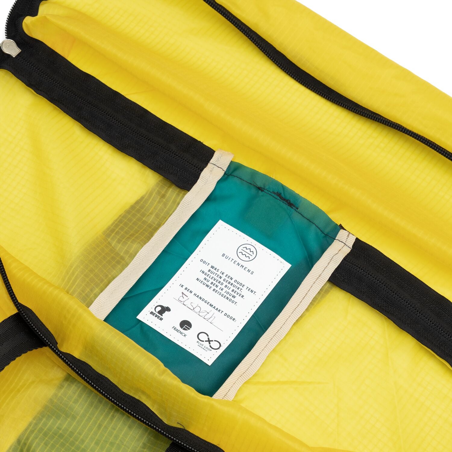 Bijna vanaf het begin van ons bedrijf zijn we bezig met het upcyclen van textiel, dus toen Blue Loop bij ons kwam met de vraag of we wat konden met afgedankte tenten, hadden we gelijk 1001 ideeën. Met als uiteindelijke resultaat de eerste accessoirelijn binnen de Buitenmens-collectie!