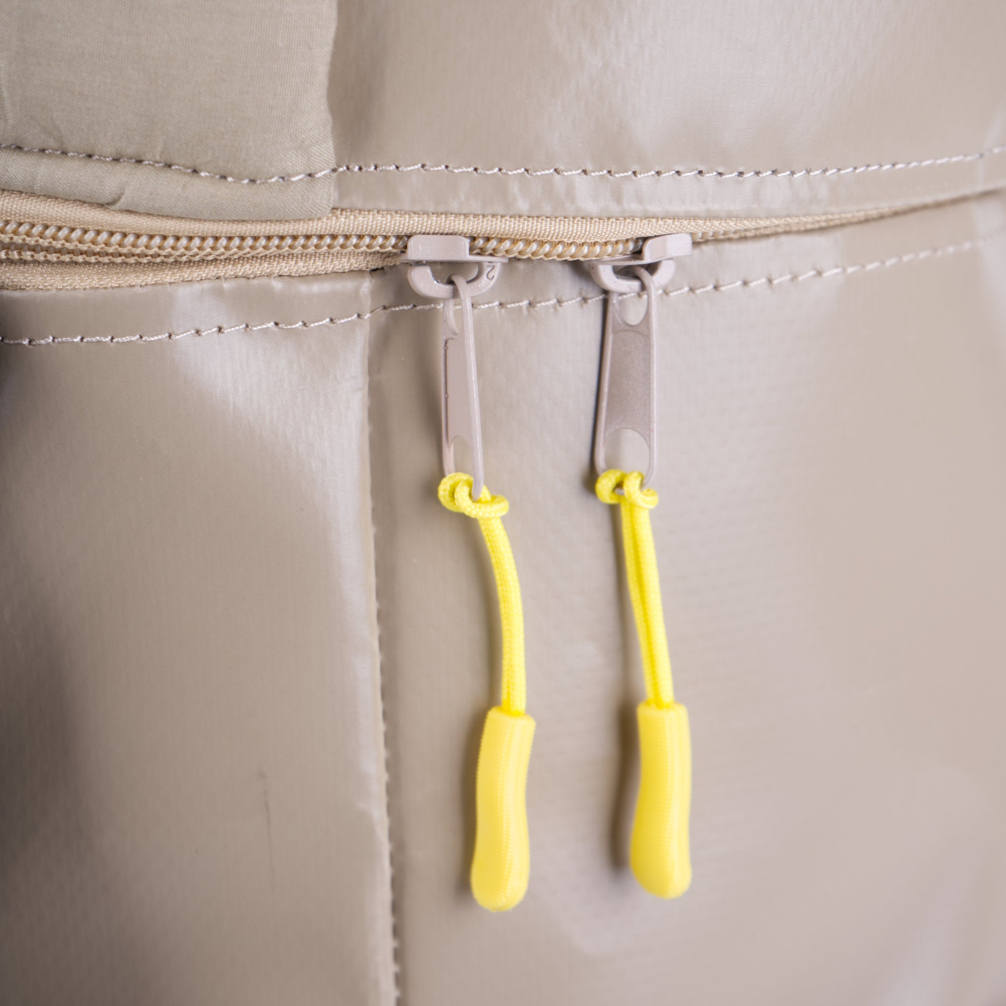 De slaapzakken van Nomad worden bewaard in de iconische pakzak. Zo onafscheidelijk als ze tijdens hun eerste leven zijn, wordt de pakzak nu direct als zijvak verwerkt in de rugtas.
