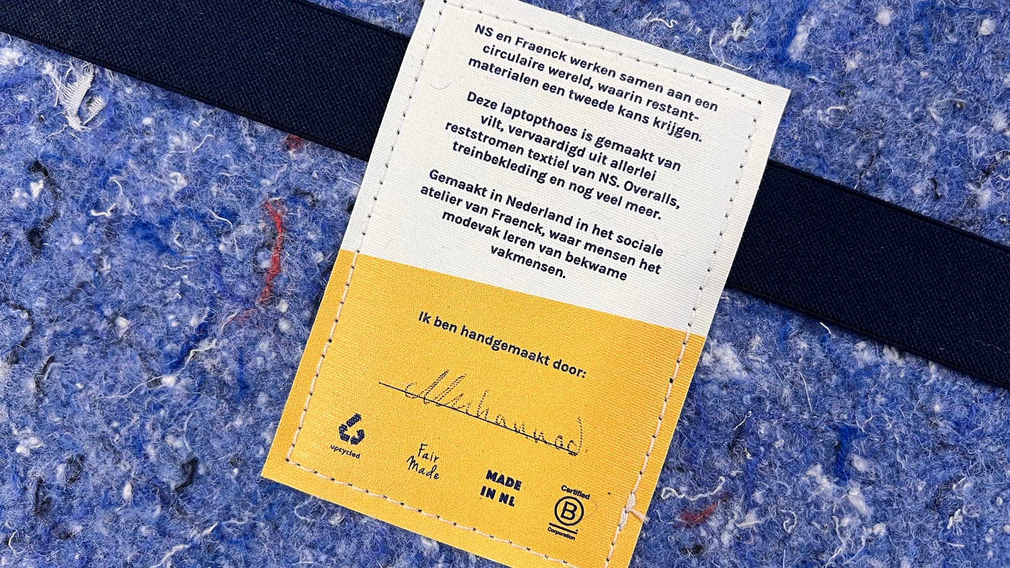 De laptophoezen hebben we echter gemaakt van vervilt materiaal, dat gemaakt is van diverse textielstromen binnen NS. Net als bij elk product dat we leveren, komt hier ook een 'storytelling' label op, waardoor de gebruiker van de tas kan zien hoe én door wie de tas gemaakt is. Wel zo transparant!