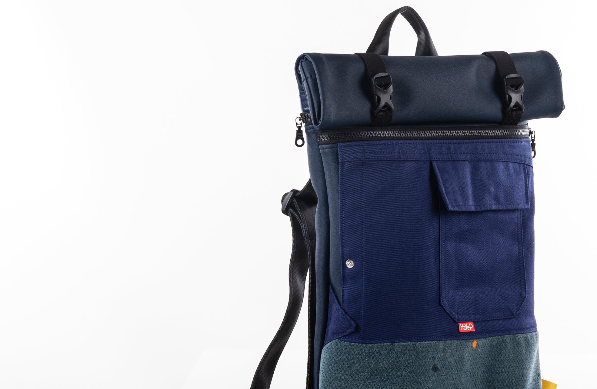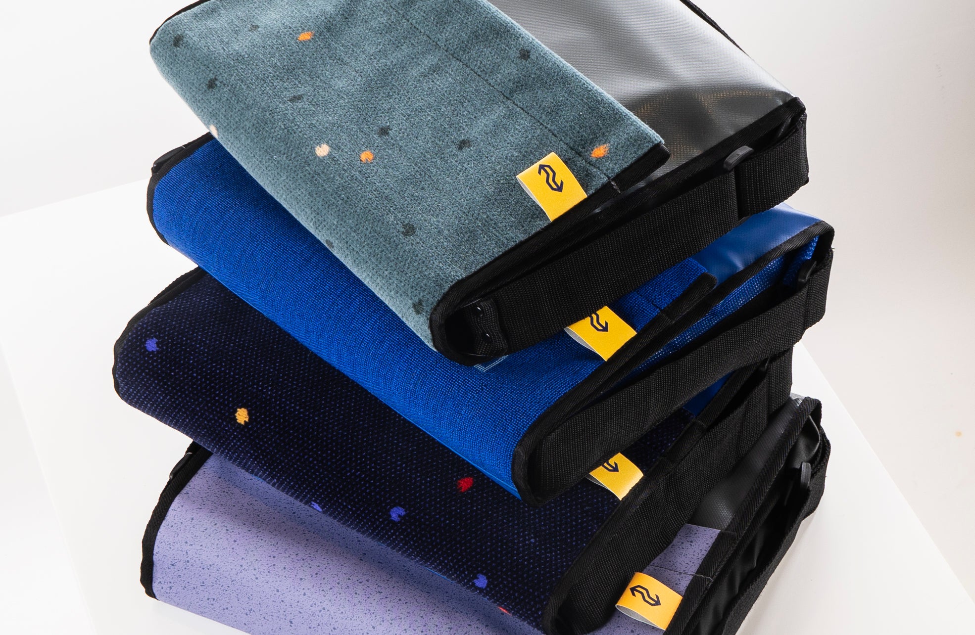 Daarnaast zetten we diverse kleuren upcycled zeildoek in, ter versteviging.