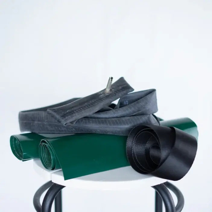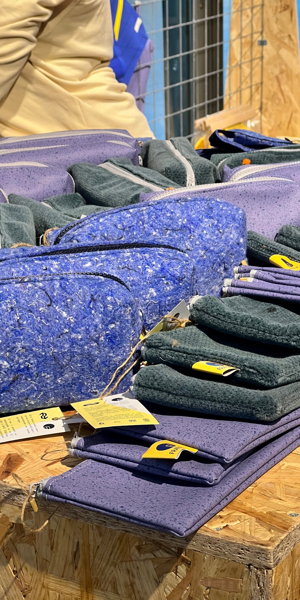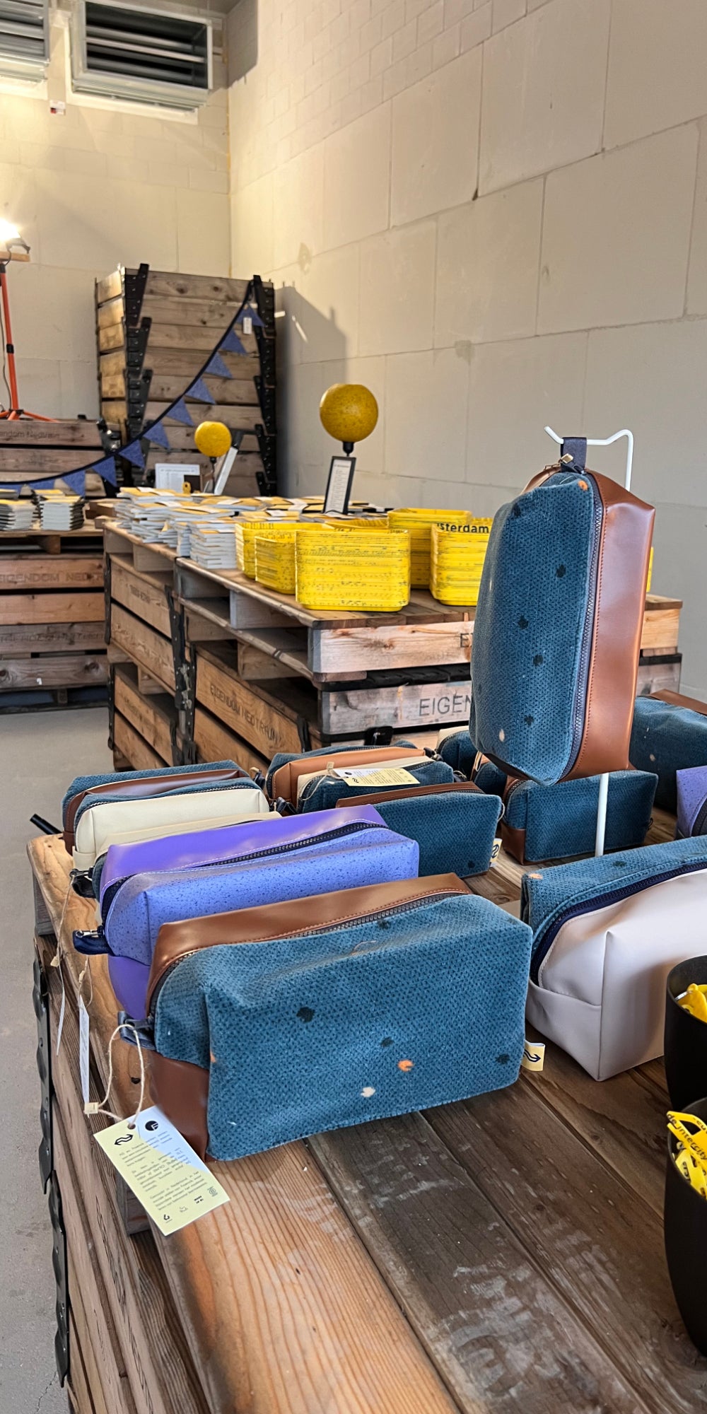 Het Nieuwe Logisch verwerkt restanten zeildoek tot stoere weekendtassen en fannypacks. De banden zijn autogordels, en naast zeil bestaan de tassen uit oude binnenbanden van OV-fietsen!