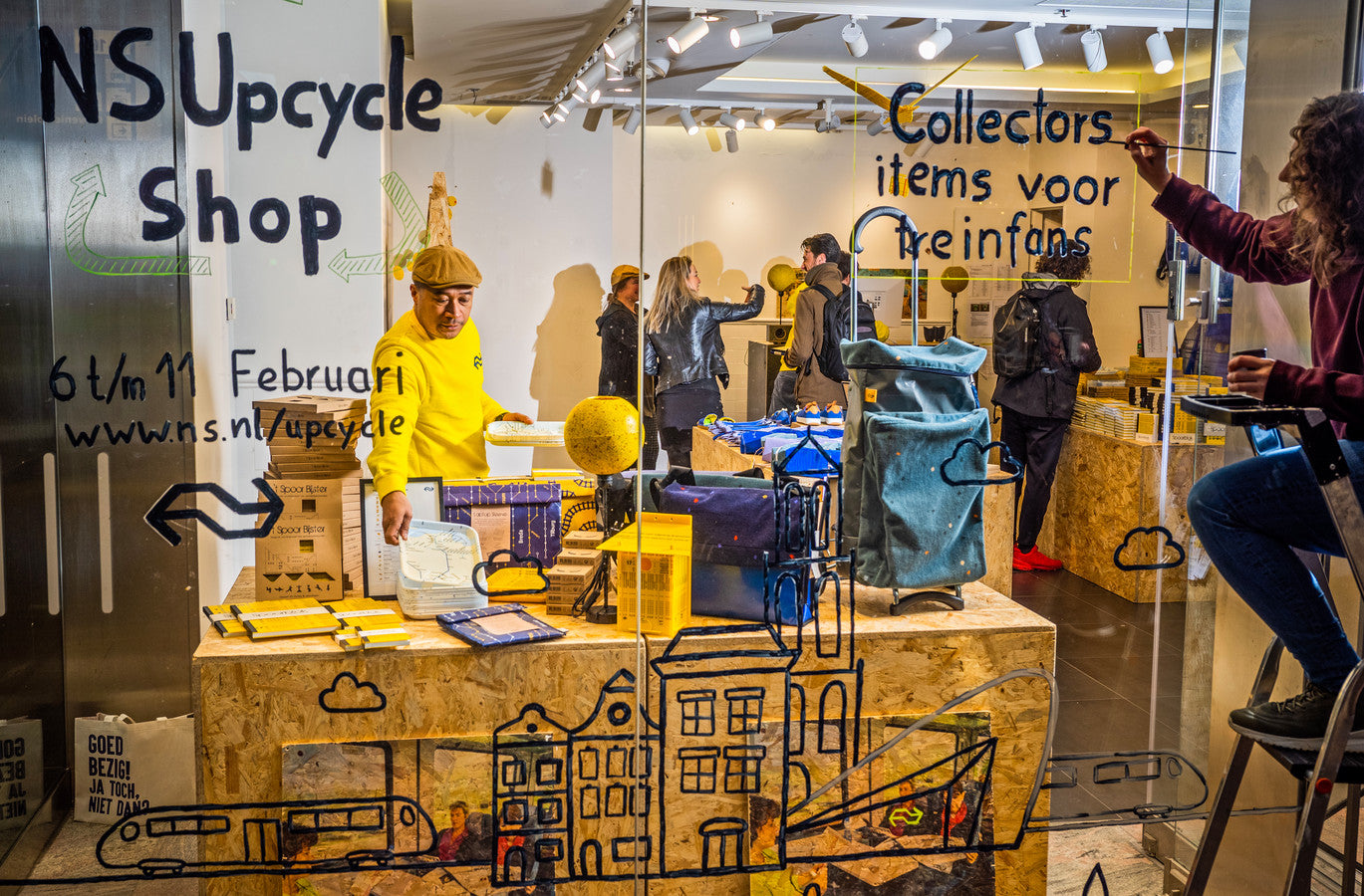 Sinds 2021 staat Fraenck elk jaar in de NS Upcycle Shop in Utrecht, toen nog georganiseerd door Groundbreakers. Vanaf 2023 organiseren we de shop zelf, samen met VerdraaidGoed. Met de jaarlijkse pop-up stores in Utrecht en Rotterdam en uitstapjes naar bijvoorbeeld Goes en Leidschendam brengen we impactmakers en duurzame initiatieven onder een groot publiek.