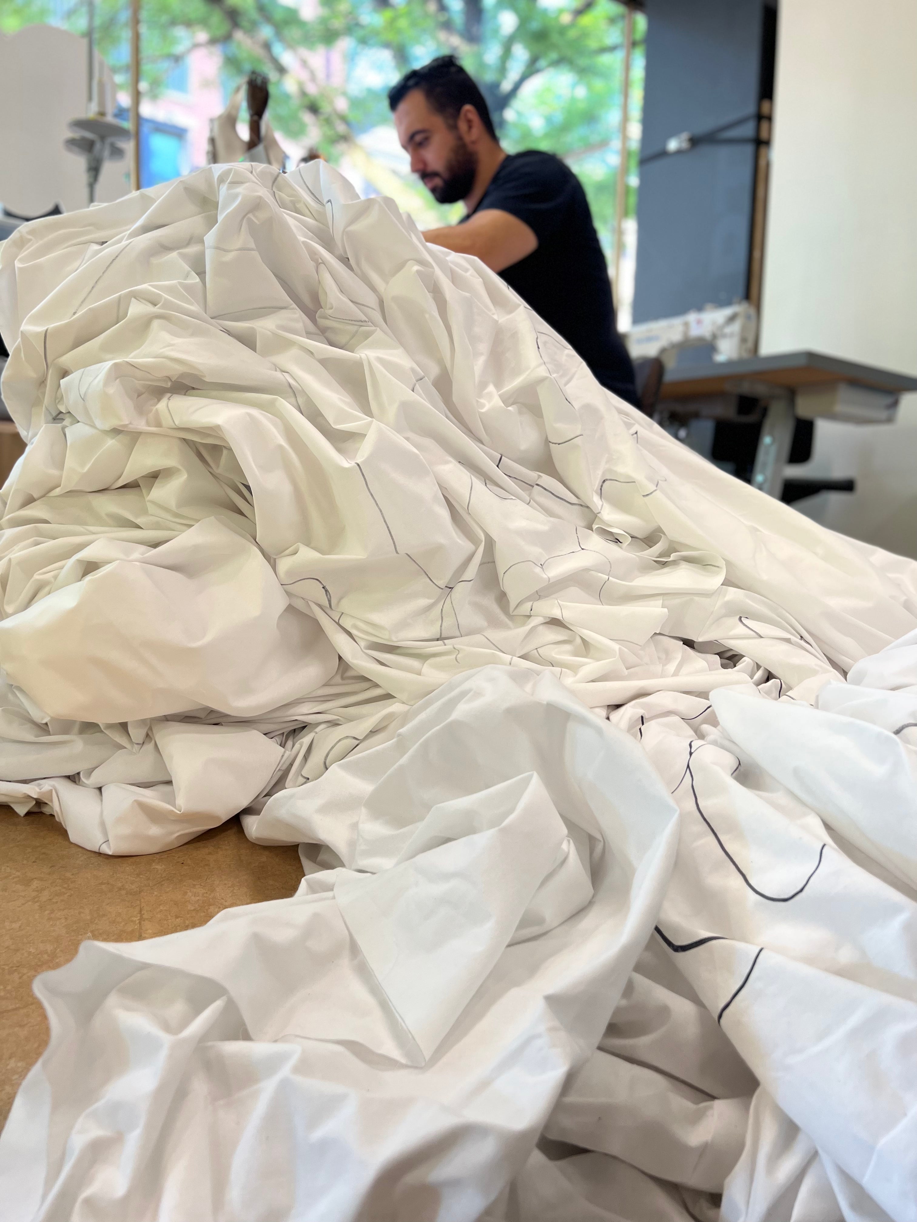 Last but not least: we moesten de tassen ook nog even produceren. Bij ons atelier in hartje Arnhem ben je dan gelukkig aan het juiste adres. Een keer niet 100 meter doek stikken, maar 100 verschillende Sams maken!