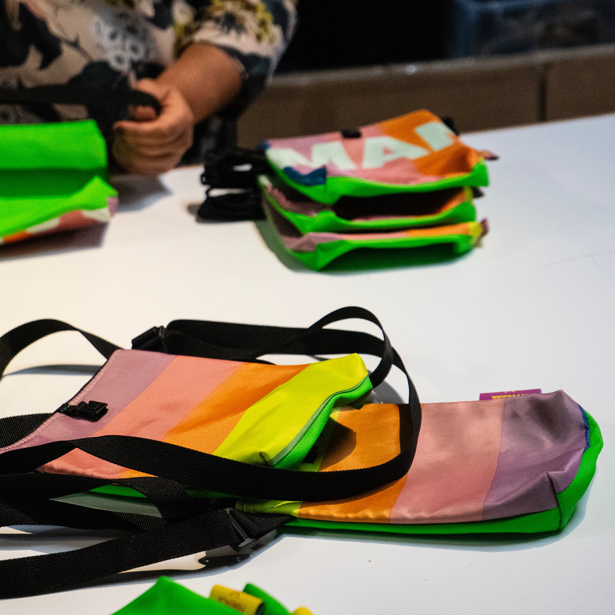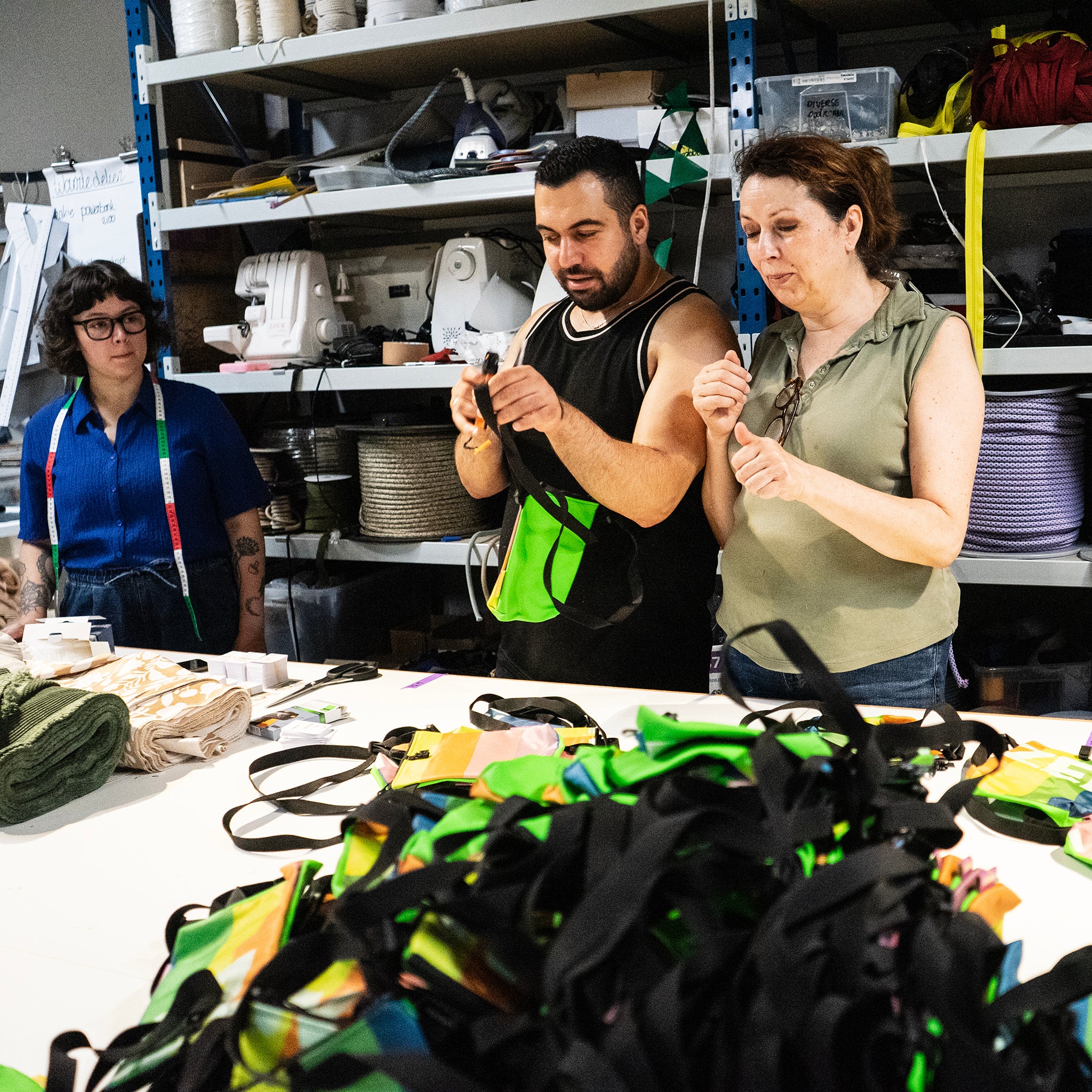 Voor deze zomer hebben we de handen opnieuw ineen geslagen. De basis is opnieuw de statiegeldtas, en we maken óók weer schoudertassen. Maar om het seizoen (eindelijk!) goed in te luiden, hebben we ook té gekke kleding mogen maken. Blousejes en shorts, volledig gemaakt van de meest iconische patronen. En helemaal unisex.
